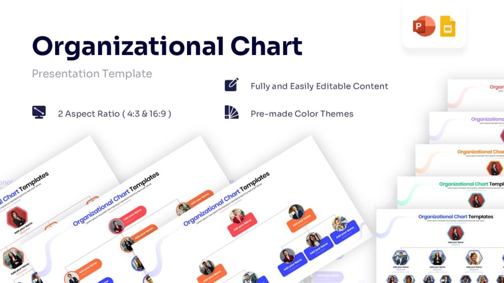These presentation templates are perfect for company profile presentations, HR onboarding sessions, and management reviews. Use them to clarify roles during a restructure, outline the chain of command in an employee handbook, or showcase your leadership team in a pitch deck. The design ensures that even complex reporting paths look organized and accessible.