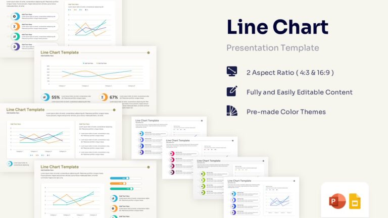 These Line Chart Templates are ideal for a wide range of corporate and educational use cases. Use them during quarterly business reviews to show year-over-year progress, in marketing reports to visualize campaign reach, or in financial pitches to demonstrate ROI. The flexibility of the vector-based design allows you to scale elements without losing quality, making it perfect for large-screen boardroom displays or printed reports.